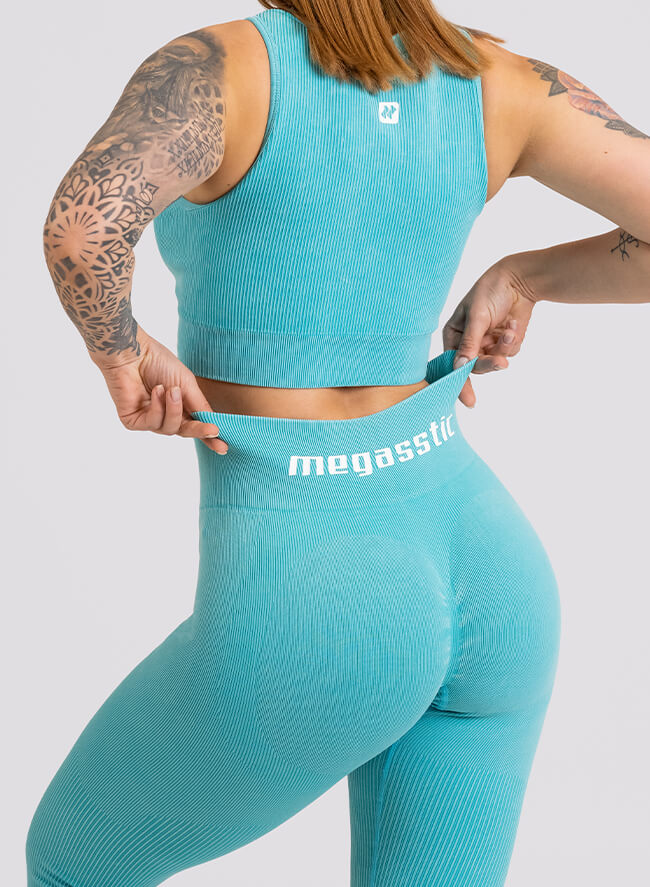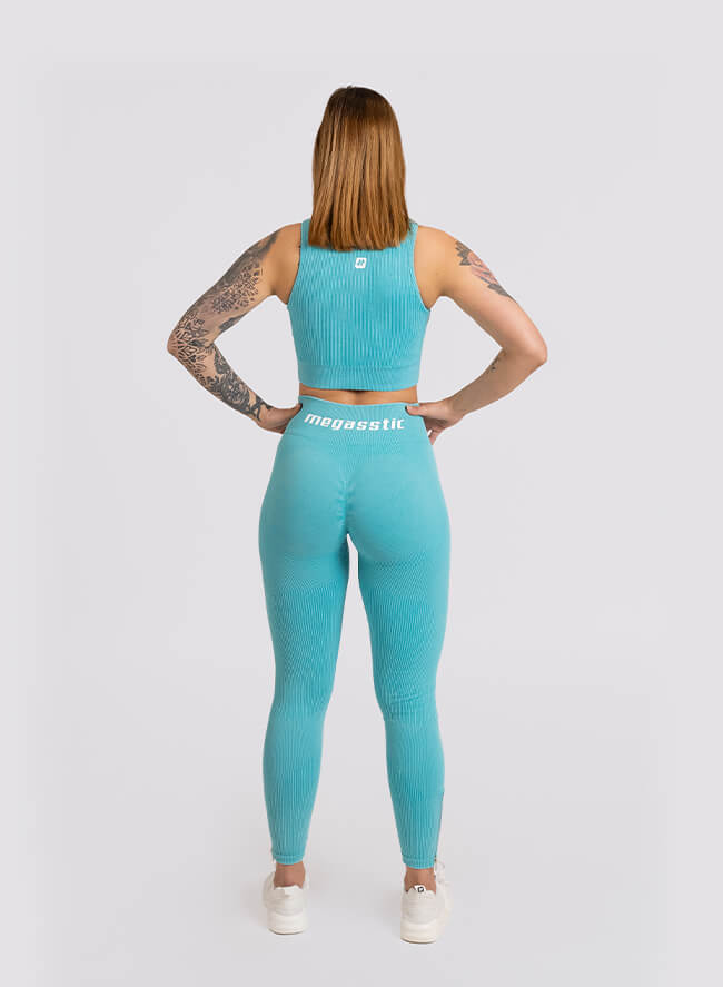 Покажете зашеметяващата си форма с този оребрен комплект, който подчертава извивките ви и извайва фигурата ви! Сутиенът има модерен елемент с изрязване и цип за лесно обличане и събличане. Този комплект е идеален за тренировка или за даване на модна заявка.