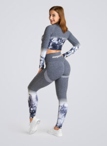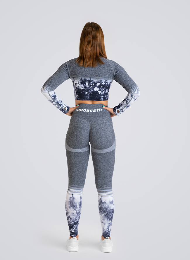 Носи спортния комплект Marble и тренирай със стил! Комплектът Marble включва горнище с дълъг ръкав и дупки за палците за по-голямо удобство, както и клин с еластична висока талия за допълнителна опора. Изработен от изключително мек и разтеглив материал и проектиран така, че да осигурява максимална свобода на движенията, този комплект е идеален за всяка предизвикателна тренировка.