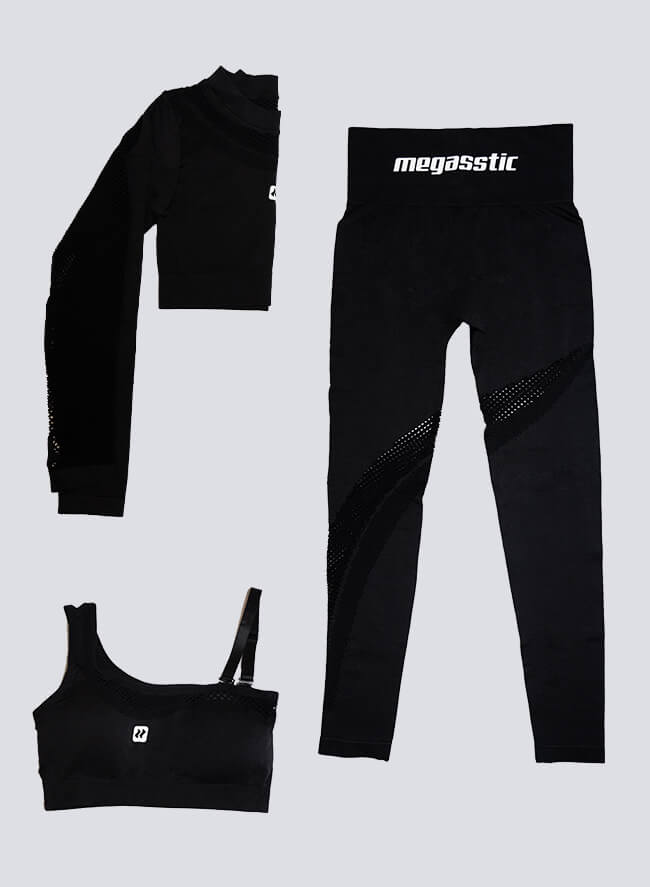 Компкектът Yuna е изработен от изключително мека и разтеглива тъкан, която осигурява максимален комфорт и свобода на движението. Създадени със зашеметяваща висока талия, която прилепва на всеки вид тяло и клина остава здраво прикрепен към тялото докато се движиш. Този комплект от 3 части включва всичко необходимо за интензивна и стилна тренировка!