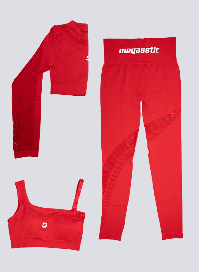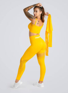 Компкектът Yuna е изработен от изключително мека и разтеглива тъкан, която осигурява максимален комфорт и свобода на движението. Създадени със зашеметяваща висока талия, която прилепва на всеки вид тяло и клина остава здраво прикрепен към тялото докато се движиш. Този комплект от 3 части включва всичко необходимо за интензивна и стилна тренировка!