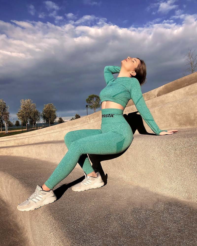 Комфортен и разтеглив, изработен от смес от спандекс и висока еластична талия, която подчертава стегнатата ви фигура. Предлага се в комбинация с изящно горнище.