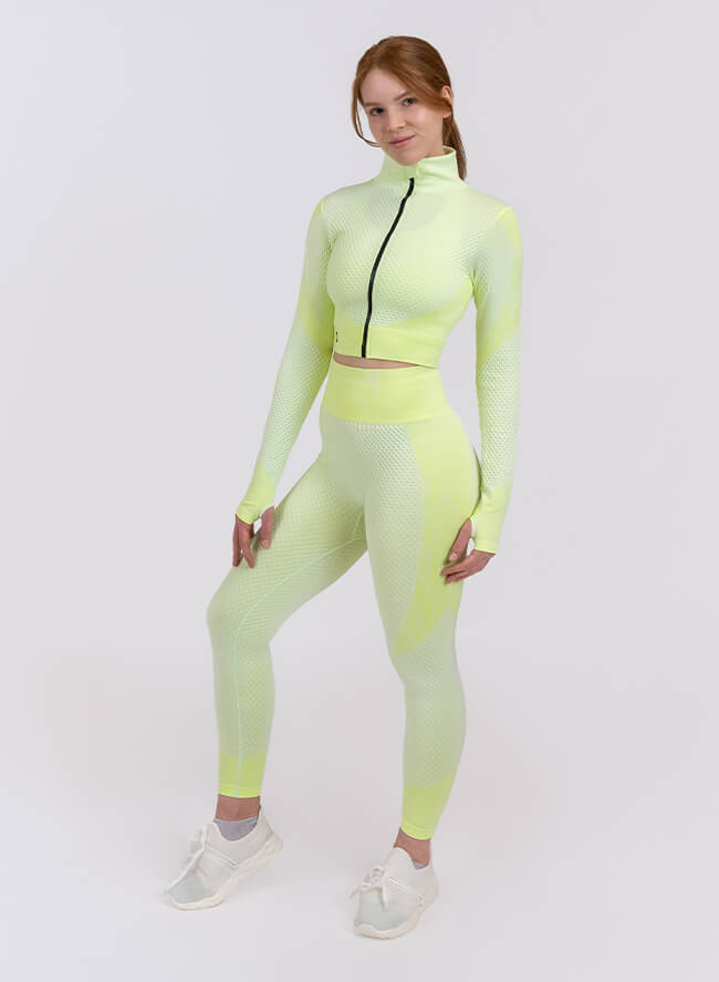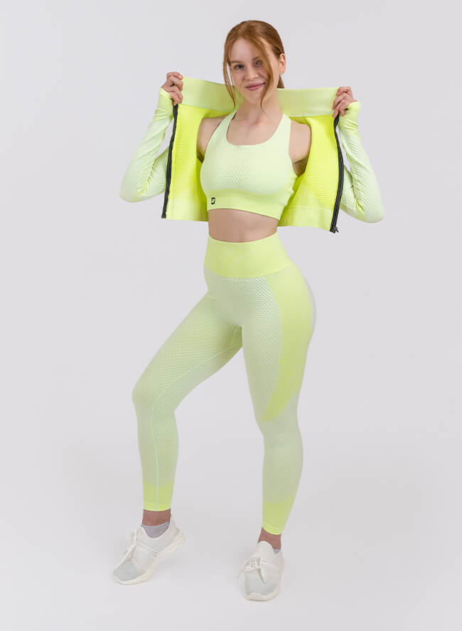 Благодарение на разтегливия и дишащ материал вие ще се чувствате толкова комфортно, сякаш това е втората ви кожа. Комплектът включва горнище, яке и клин – всичко от което имате нужда за йога, пилатес, тренировка, катерене, тичане и дори танци.